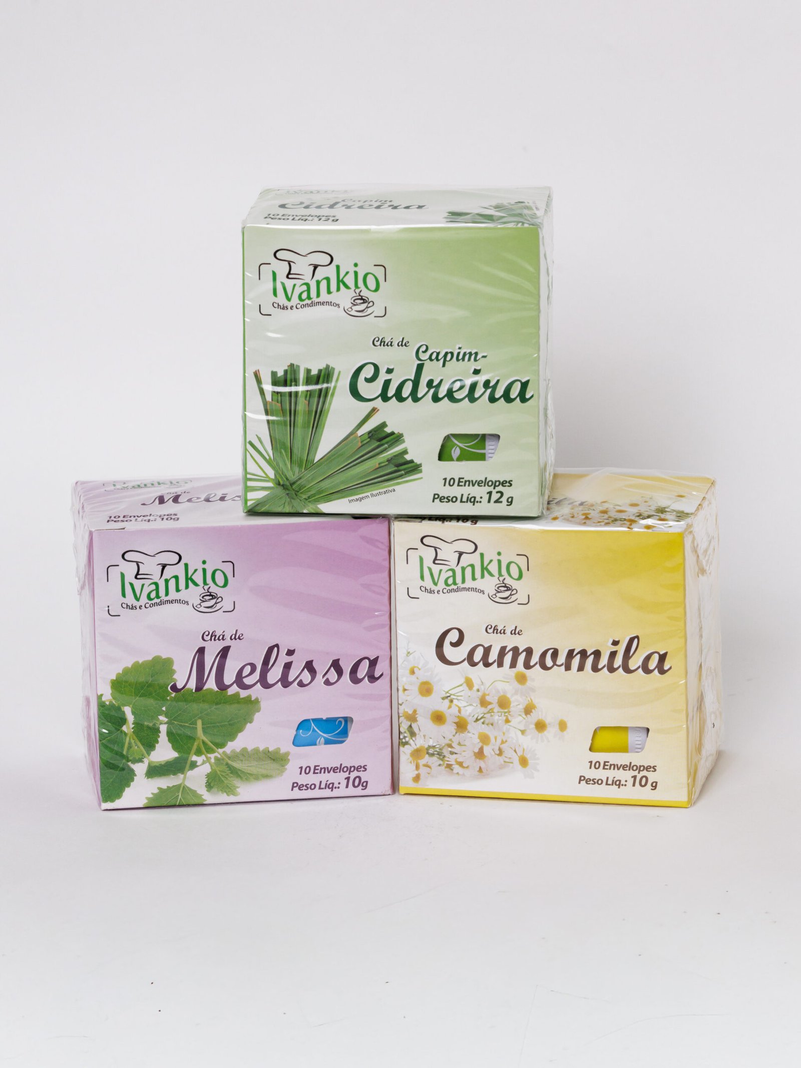 Camomila, capim-cidreira, erva-doce, hortelã, hibisco, entre outros